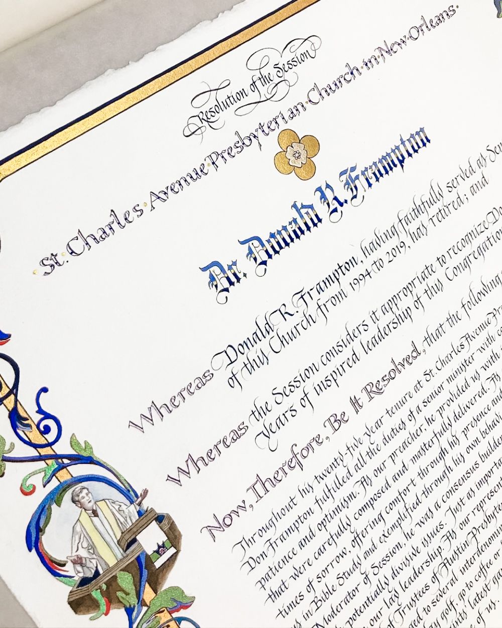 Patti is a busy calligrapher, living and working in New Orleans. She specializes in a wide array of unique commissions including proclamations and invitations for Mardi Gras, custom lettering for books, gilding projects and book illustration.