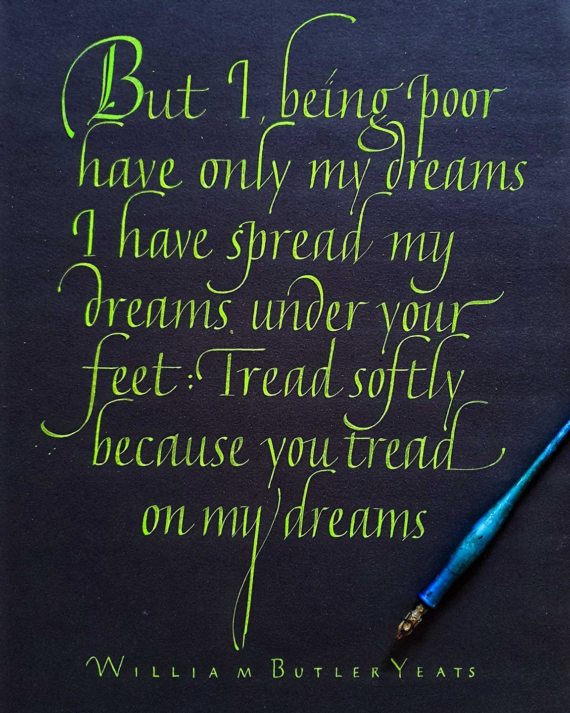 Italic hand, also known as "Chancery Cursive," is of the most popular styles used in contemporary western calligraphy. An elegant, classy broad edge script and a must-have in every calligrapher’s repertoire, Italic hand is one of the most versatile and practical hands even in current times. This workshop is for those who want to start complementing their pointed pen experience as well as for those who wish to revitalize their broad pen skills.